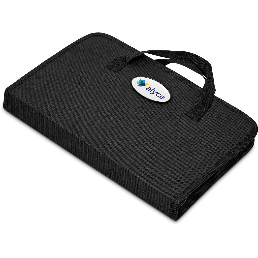 Whether it’s at that self-catering place with the small wine glasses and the blunt knives, or just out at the braai at home, this food prep set is bound to be your new best friend. It features a chef’s knife, a chef’s fork, a knife sharpener, and a serrated steak knife on one side, and a wooden cutting board on the other. All are packaged within a rigid bag with a carry handle and a recessed badge for dome branding.