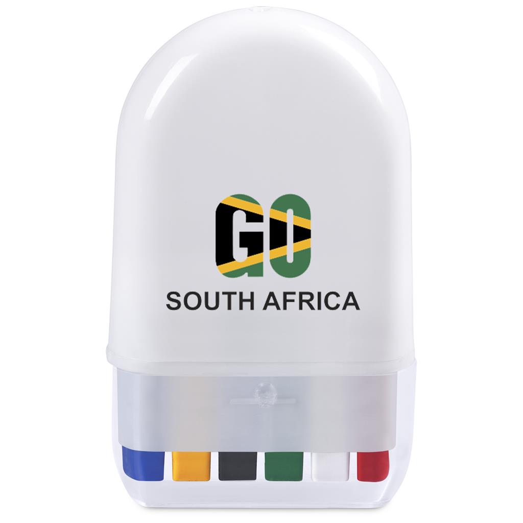 Turn any occasion into a celebration with this compact 6-in-1 face paint. Featuring the six colours of the South African flag, it’s an ideal product for sports events, festivals, school spirit days, and more. The water-washable formula applies smoothly and cleans off easily, giving you the fun without the fuss.