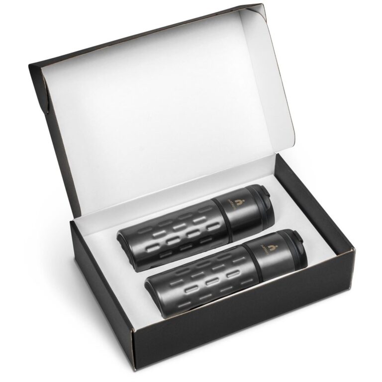This elegantly presented vacuum drinkware set includes a 750ml bottle and two stainless steel tumblers.…