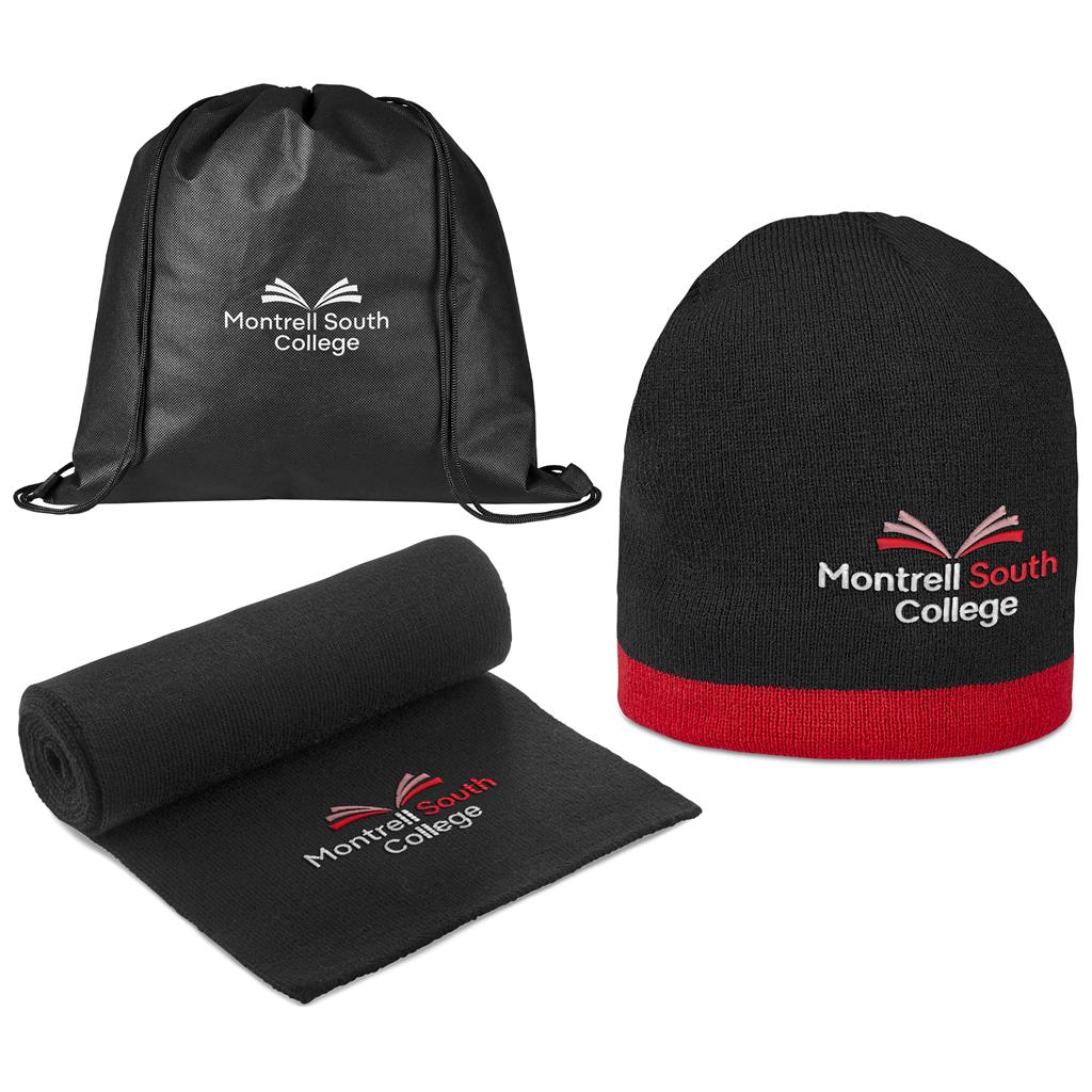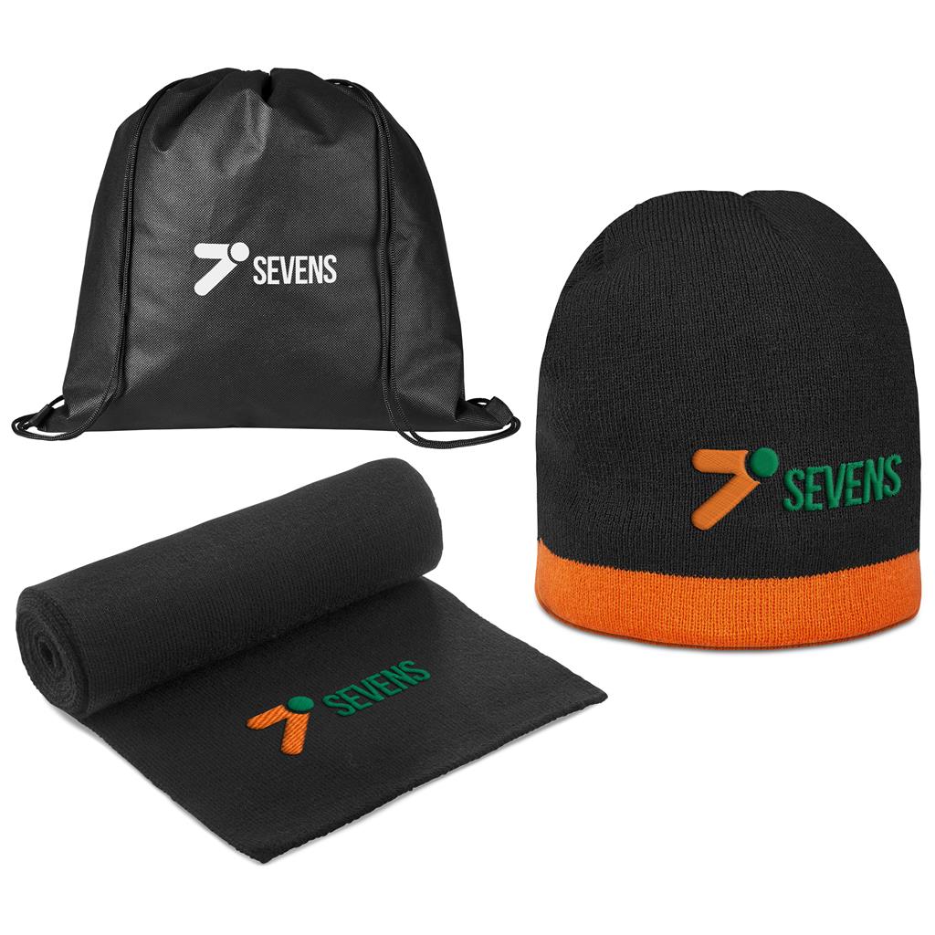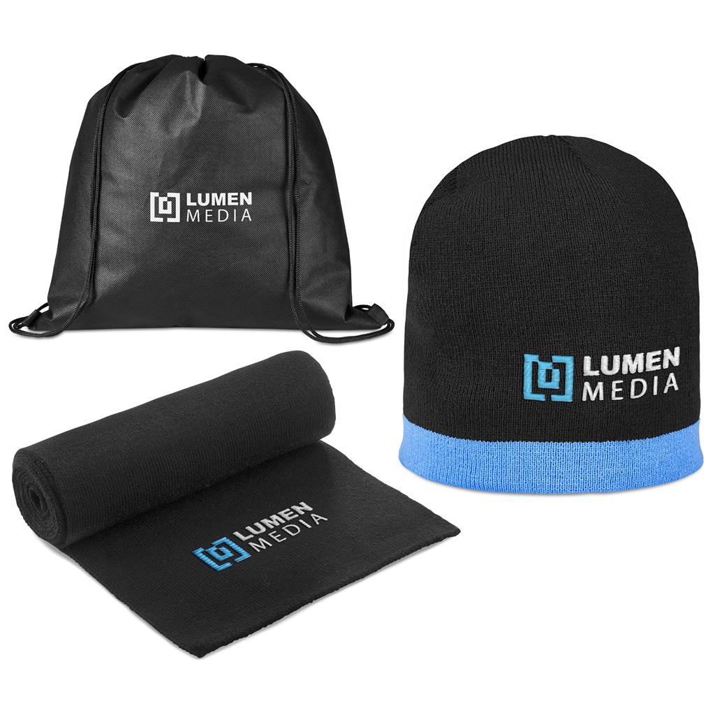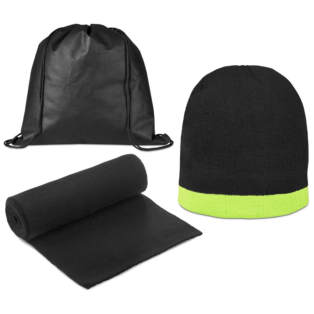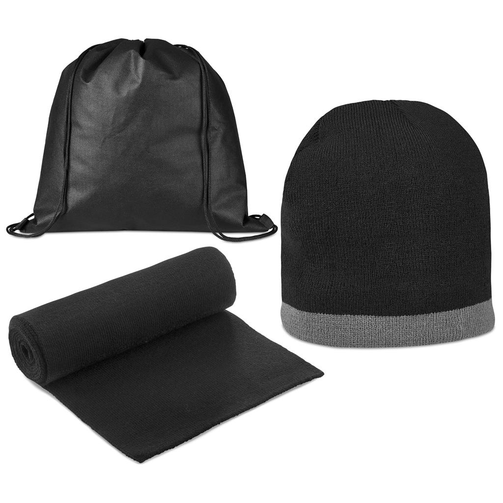 Stay warm this Winter, or in the outdoors, with this cosy scarf and beanie, packaged together in a drawstring bag.