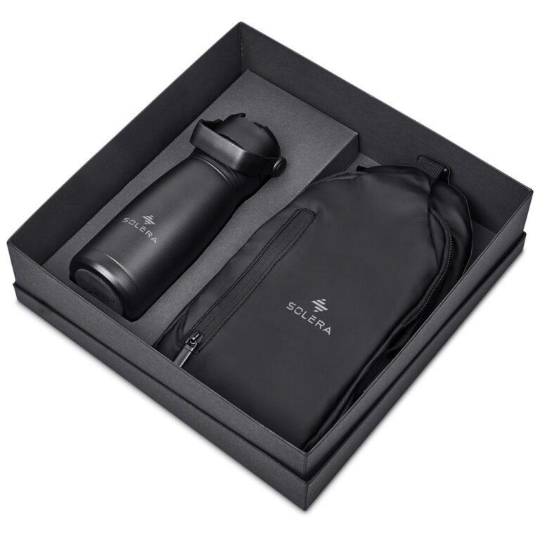 A 500ml stainless steel vacuum flask is paired with a black fleece blanket in a kraft gift box.