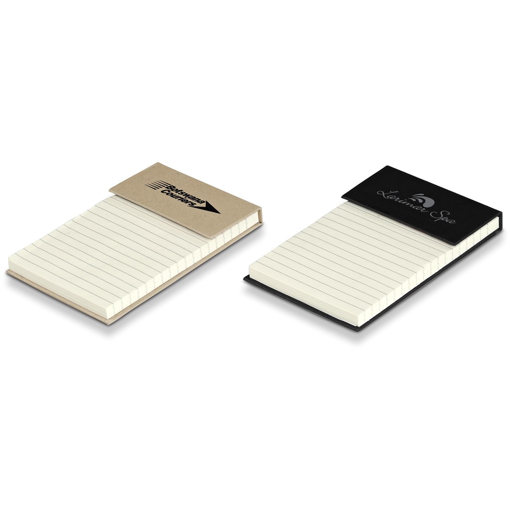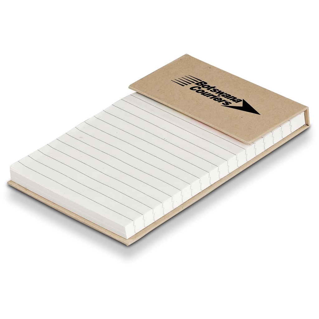 This desktop notepad has 100 sheets of lined paper, and can be branded on the front flap. Lift the flap to reveal sticky flags in 6 colours.