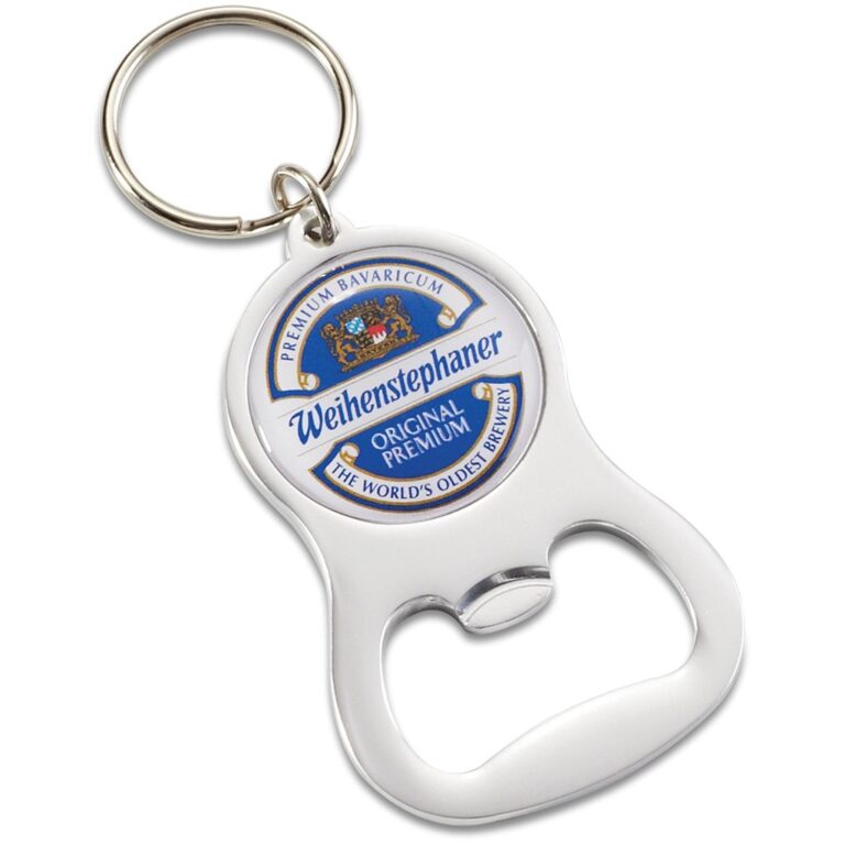 This nickel-plated, zinc alloy bottle opener keyholder is designed for full-colour dome branding on the…